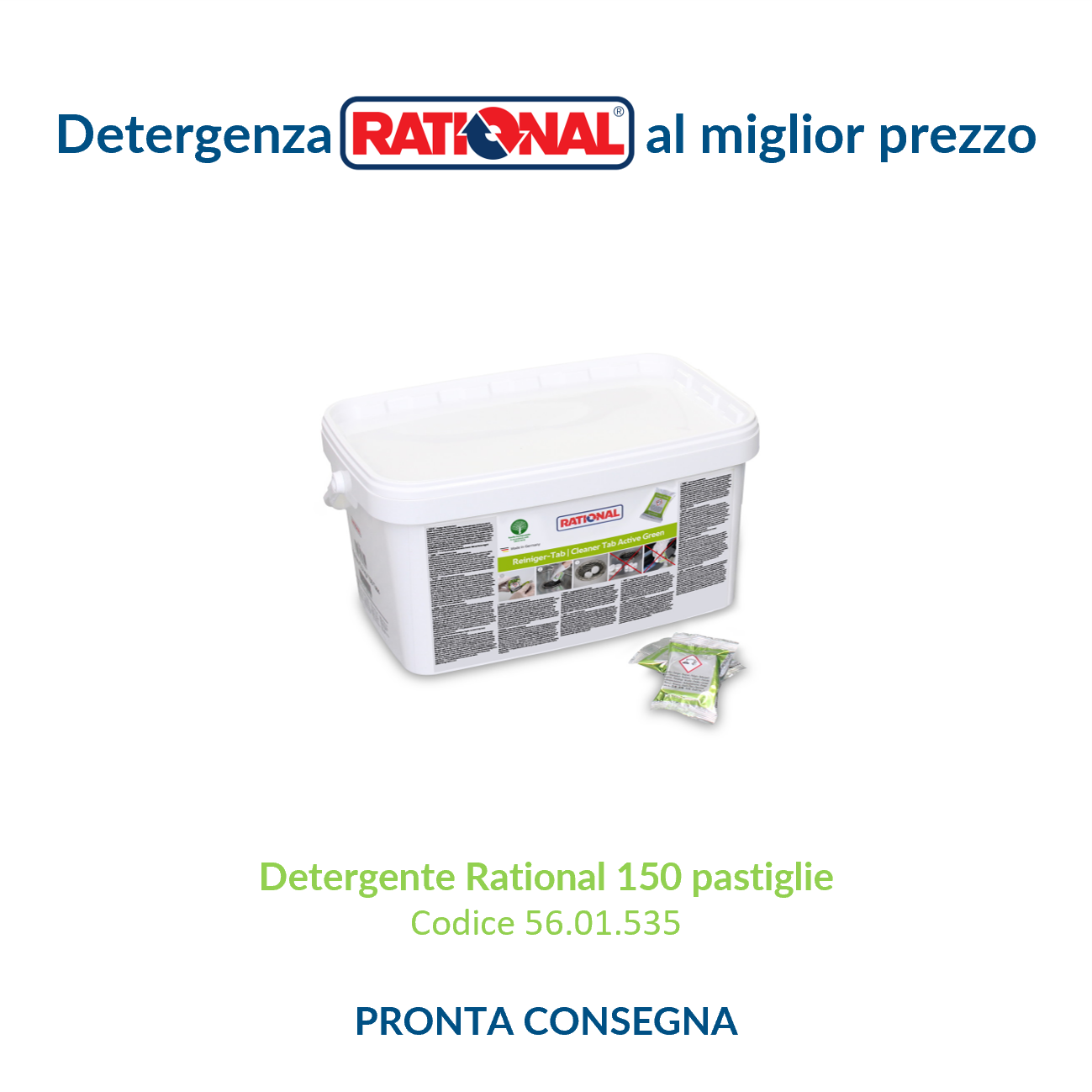 Il nostro prezzo per il Detergente Rational Active Green (150 pasticche verdi ciascuna confezione – codice prodotto Rational RT56.01.535C) è il migliore che puoi trovare sul mercato. Nel prezzo sono sempre comprese le spese di trasporto in tutta Italia per ordini superiori a Euro 250. I prodotti sono pronta consegna.